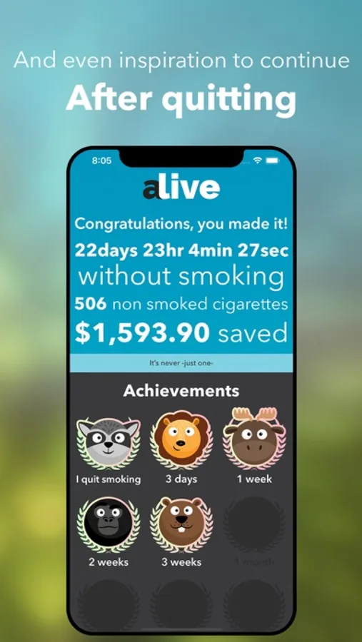 Alive is not just cutting down to quit smoking. It adapts to you throughout the process to maximize results.