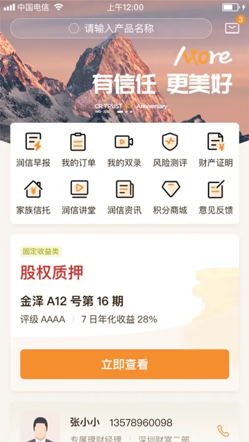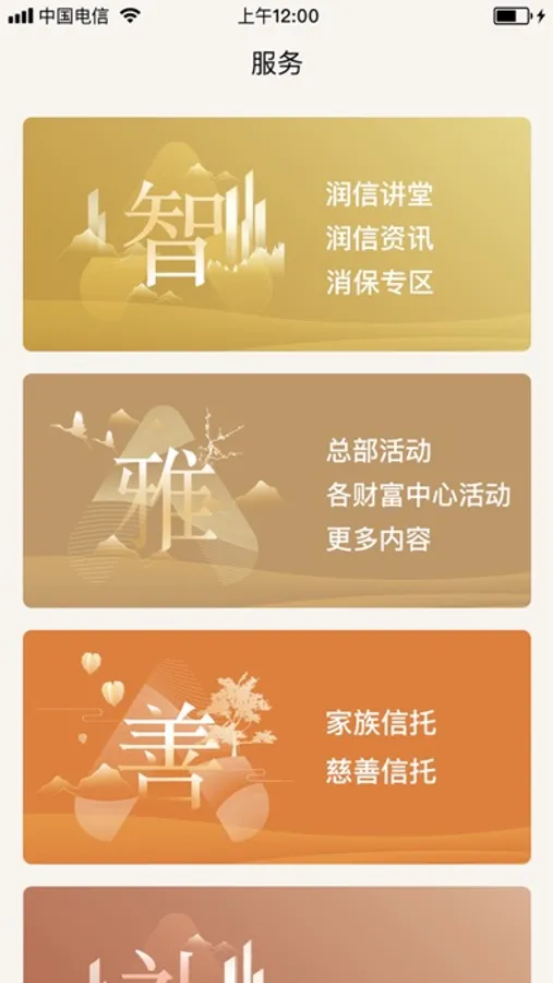 现金管理类、固收类、权益类、家族信托,满足对收益性、流动性、财富传承等不同需求,为您提供全方位的资产配置,实现财富的保、增、传。