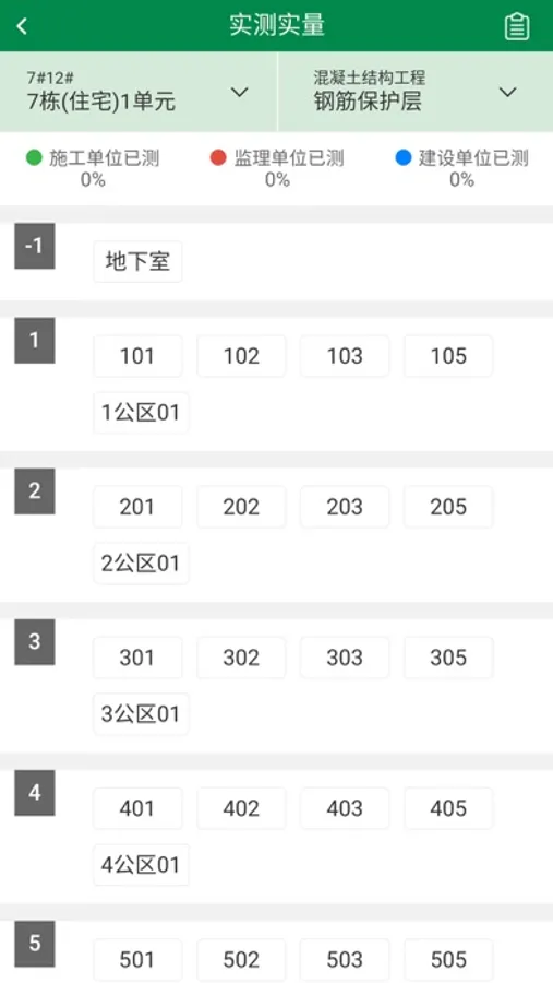2)实测实量:施工单位,监理单位,建设单位多方单位,各自对检查项目进行现场实际测量填报,APP智能计算合格率,通过汇总报表能更好的查看和分析当前工程质量状况。