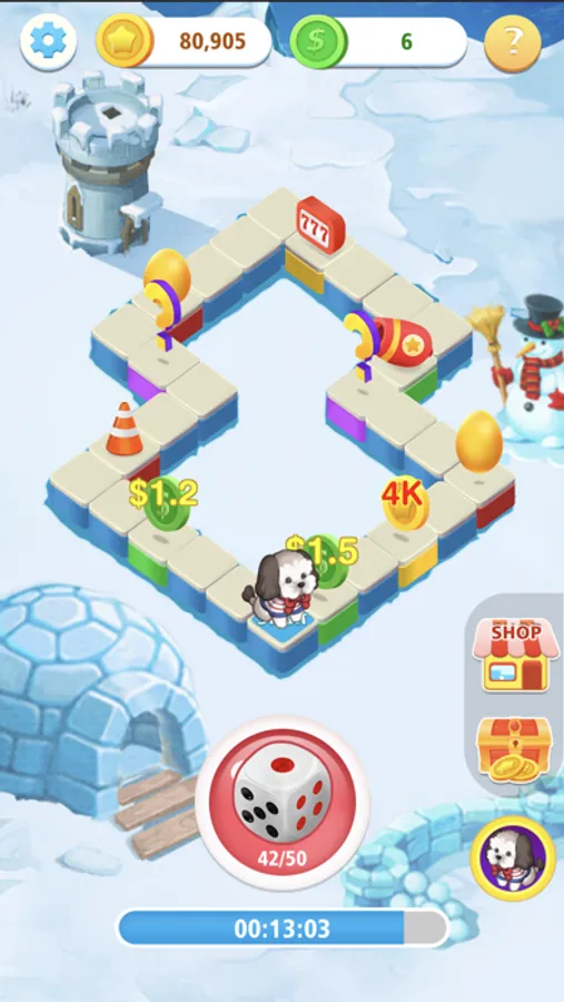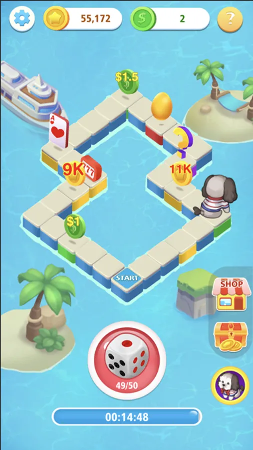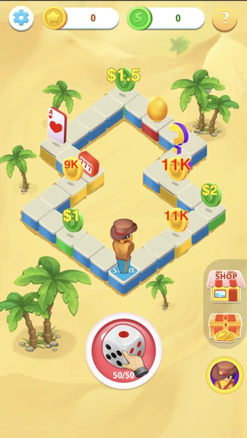 When the game starts, you will get one dice and fifty throwing opportunities. The chance is once every fifteen minutes. According to the number of points thrown, your chess pieces will jump a few steps accordingly.When your chess piece falls on an icon, you will enter the game represented by that icon, and experience a variety of novel gameplay while getting rich rewards.If you are lucky today, then go for big prizes and all kinds of novel games! ! !