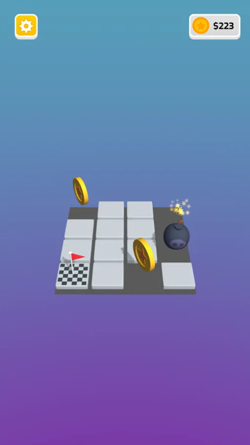 Move the cube by swipe on screen and reach the flag. if your cube color change green to red it means you have a bomb mine around you.Choose the correct tile and survive to reach the final goal.