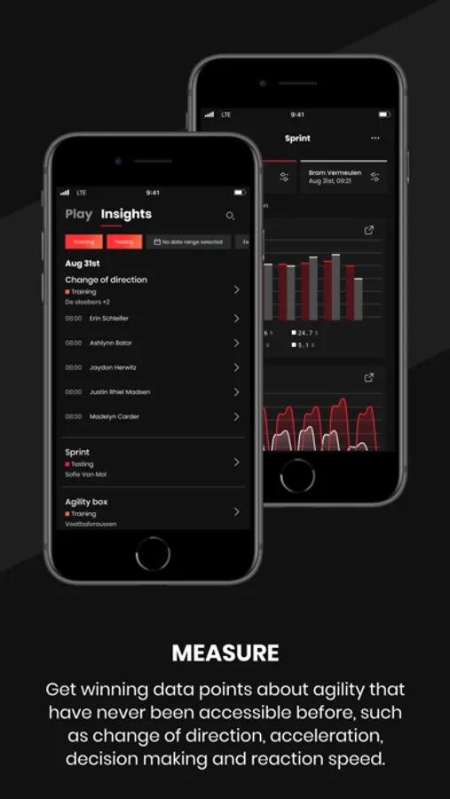 As a coach, you get winning data points about agility that have never been accessible before, such as change of direction, acceleration and deceleration, decision making and reaction speed, etc. This data is obtained by executing standardized tests and regular training sessions with the Ledsreact Pro, no wearable required.