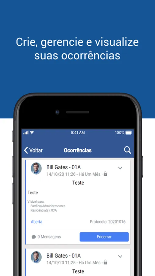◉ Ocorrência com notificações para o Síndico e/ou Supervisor