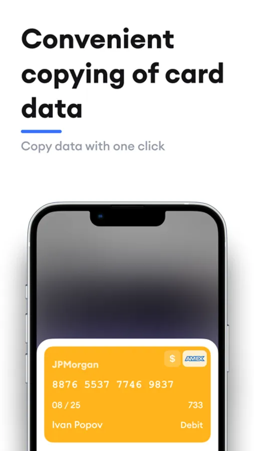 Open the app. Copy the details of your card. Use the clipboard to transfer data to other applications.