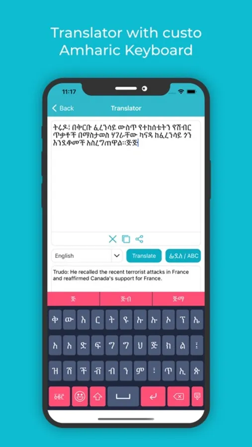• Another important feature in the Amharic keyboard and Translator, and one that makes this the best Amharic keyboard and Translator for iOS is its adaptability with apps. Use the keyboard extension feature to type Amharic directly into any app.