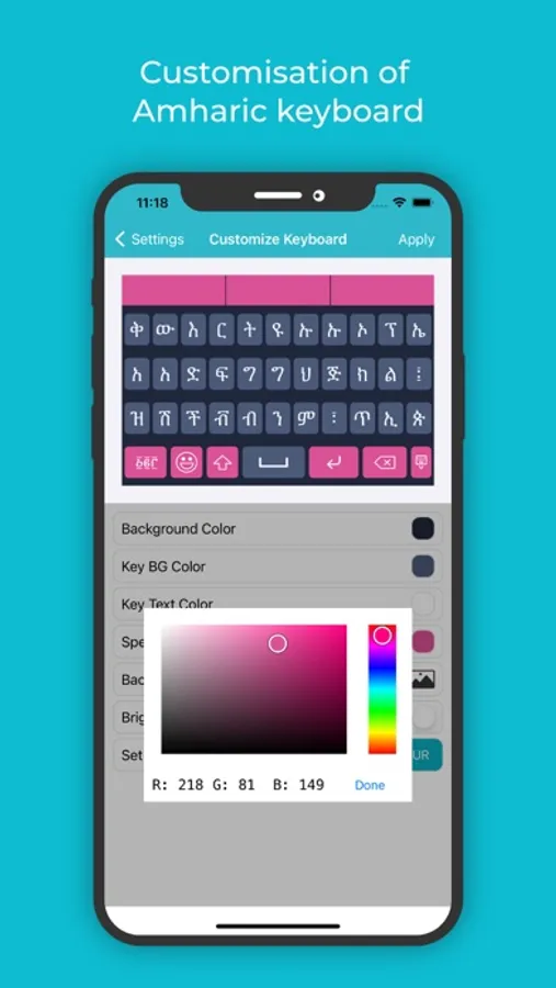 • With the Amharic keyboard for iOS, you can even set your own image in the background.