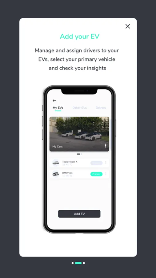 • Add multiple vehicles (eg personal, company) and charging cards (eg personal, corporate) in the same app account