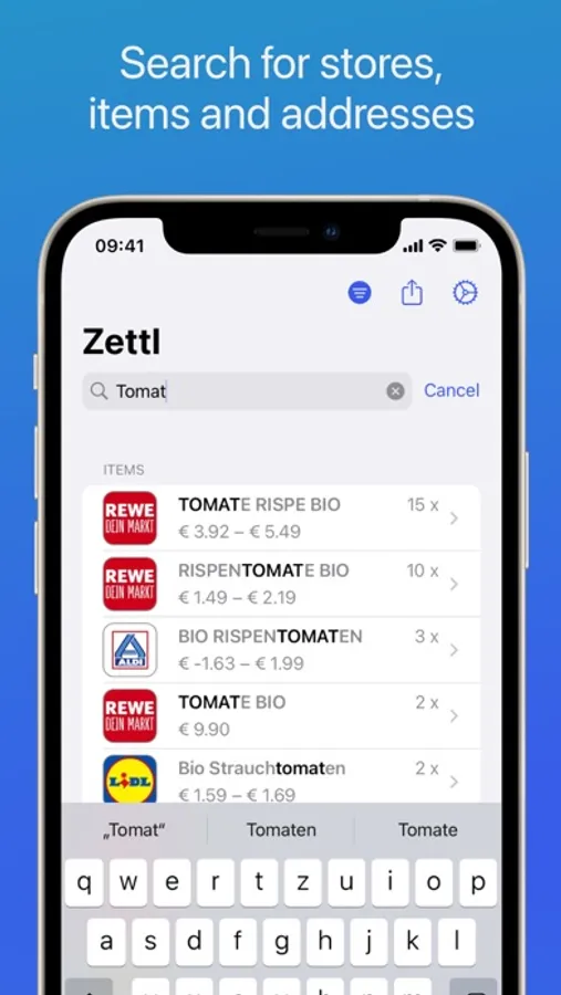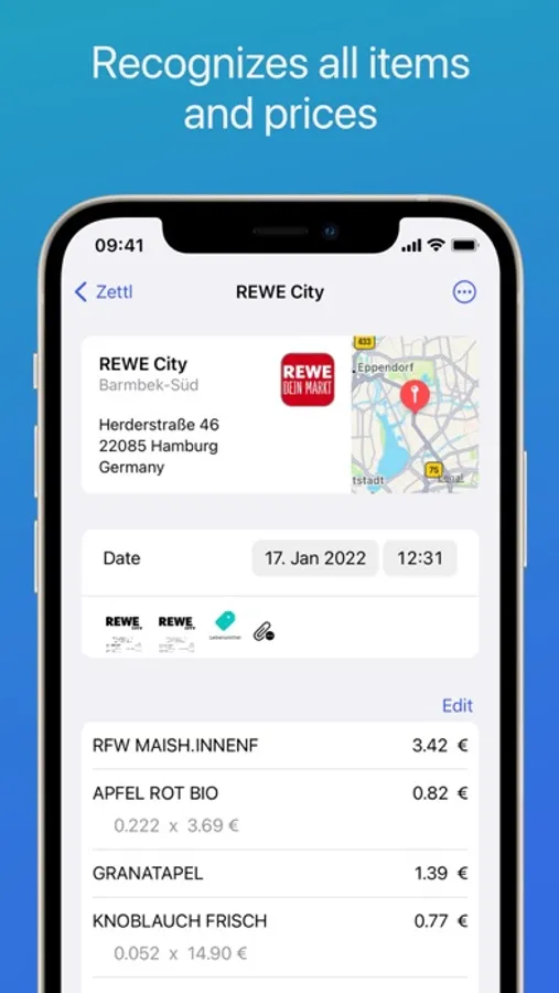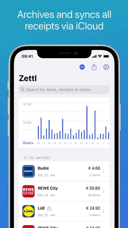 The app makes it easy to scan your receipts, recognizes the items and prices and gives you an overview over the items you buy every day!
