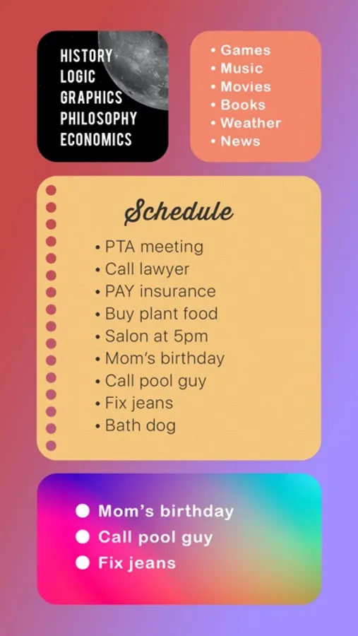 Arrange your thought with different size, colors, custom fonts and checklists.