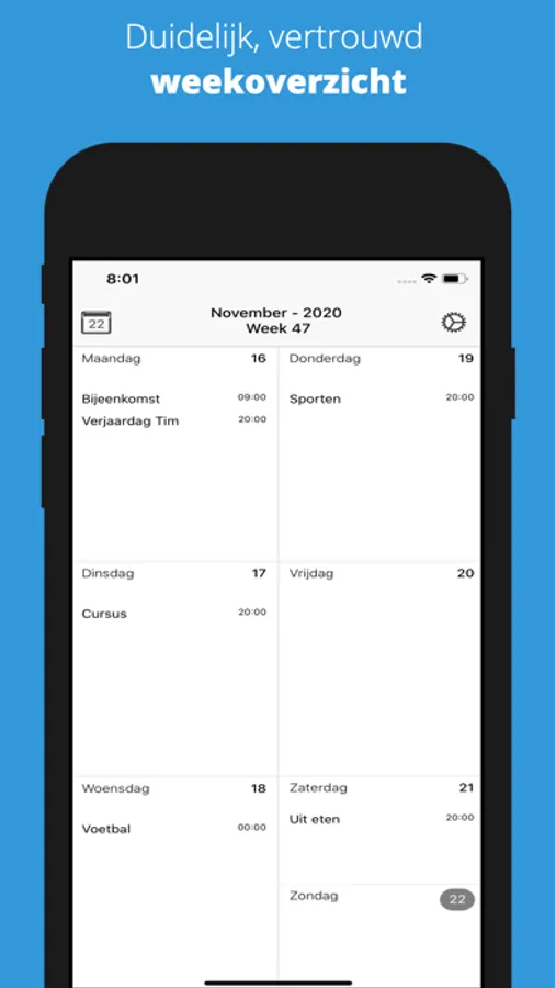 Op zoek naar een duidelijk weekoverzicht op uw mobiel?