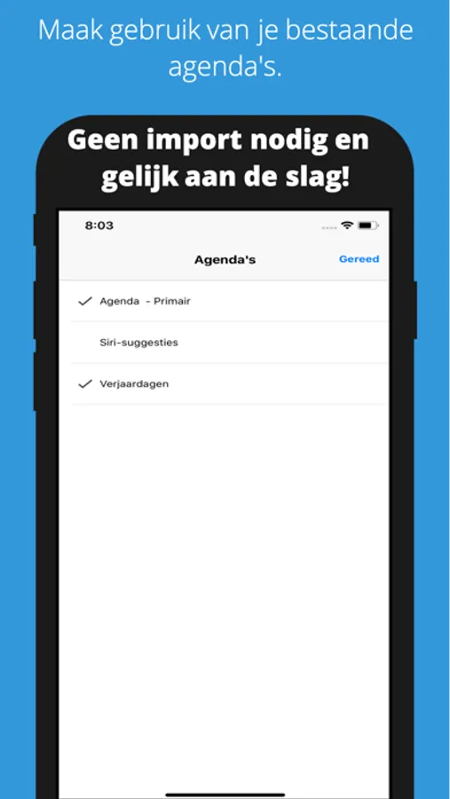 De app gebruikt de bestaande agenda's op uw iPhone.