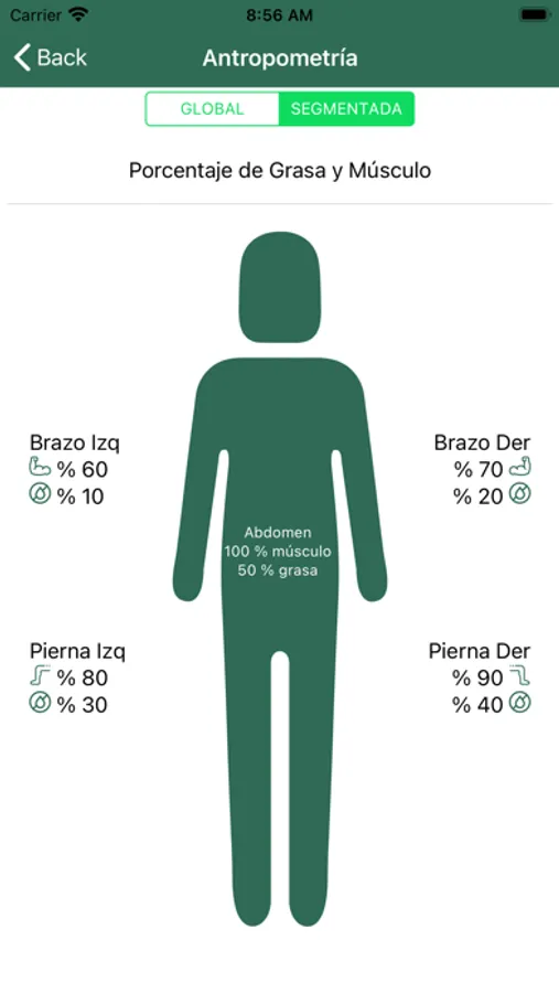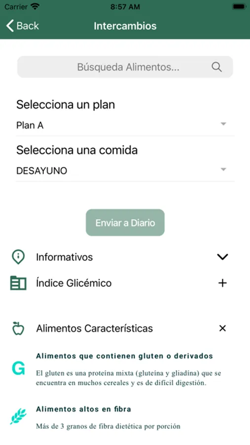 además, puedes llevar un registro de estado de composición corporal (peso, hueso, agua, grasa, músculo, entre otros) y recordatorios de tiempos de comida, trofeos y listas de intercambios de más de 600 alimentos.