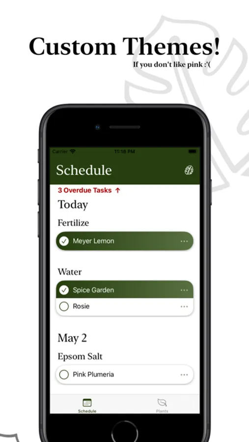 Plantir is a beautiful plant tracking app and has the most customizable schedules for tracking anything and everything with your plants.