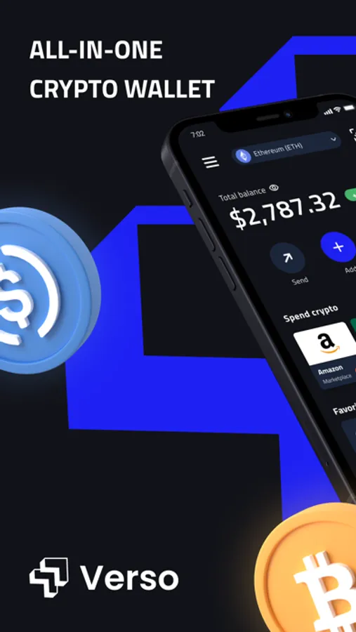 Verso is a crypto wallet where you can safely buy bitcoin, ethereum or other crypto currencies. Manage your crypto wallet in a single app and earn crypto rewards. It’s a non-custodial DeFi wallet where you hold your crypto and your private key.