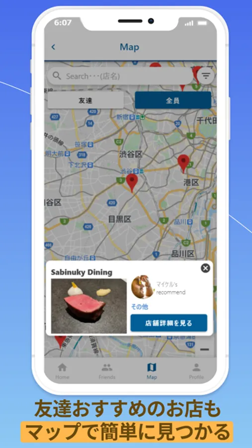 マップから探すも良し、友達から探すも良し、自分に合った探し方で、