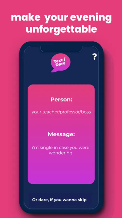 Rules are simple: text a certain message to a person on the screen or do whatever your friends dare you! Sounds easy, right? And exciting as well!