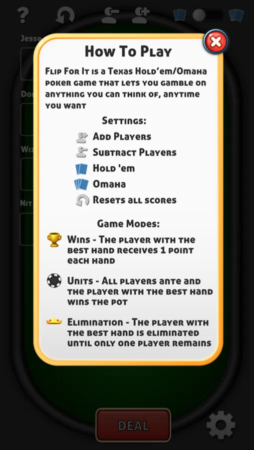 Flip For It is a Texas Hold’em/Omaha poker game that lets you gamble on anything you can think of, anytime you want.
