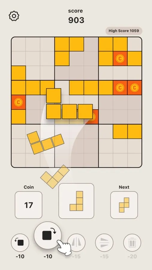 As your score increase more of blocks are appeared into the game and you need more coins to delete or rotate the blocks.