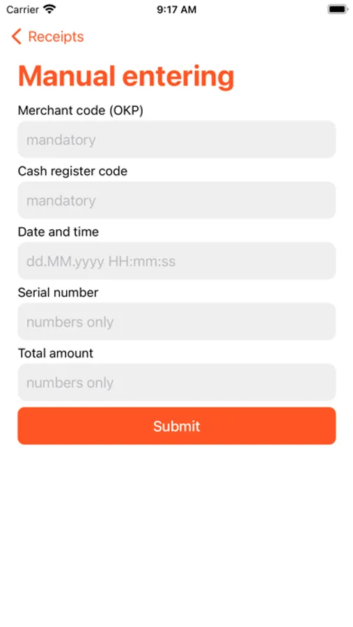 If a receipt does not have a QR-code, it's possible to enter the code manually.