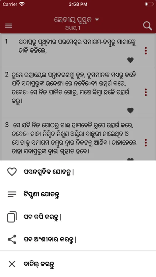 The Oriya Bible supports zooming, copying, and sharing of your favorite passages.