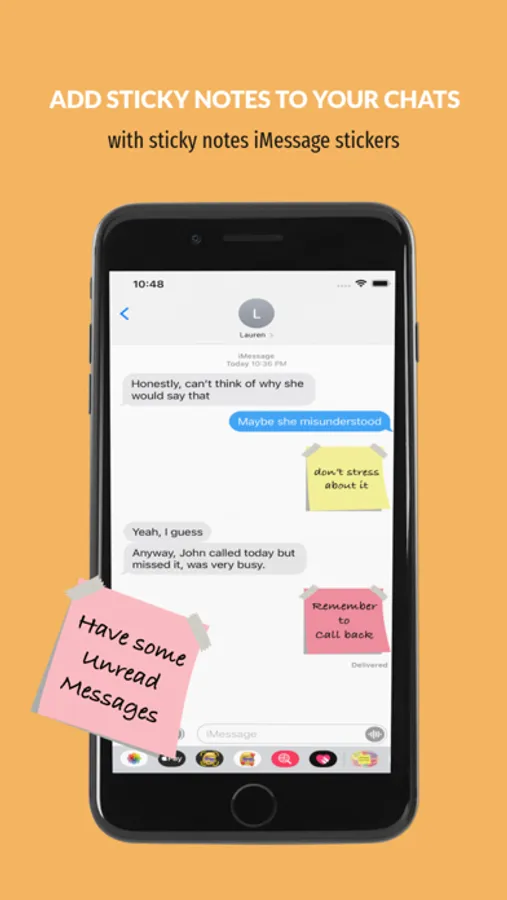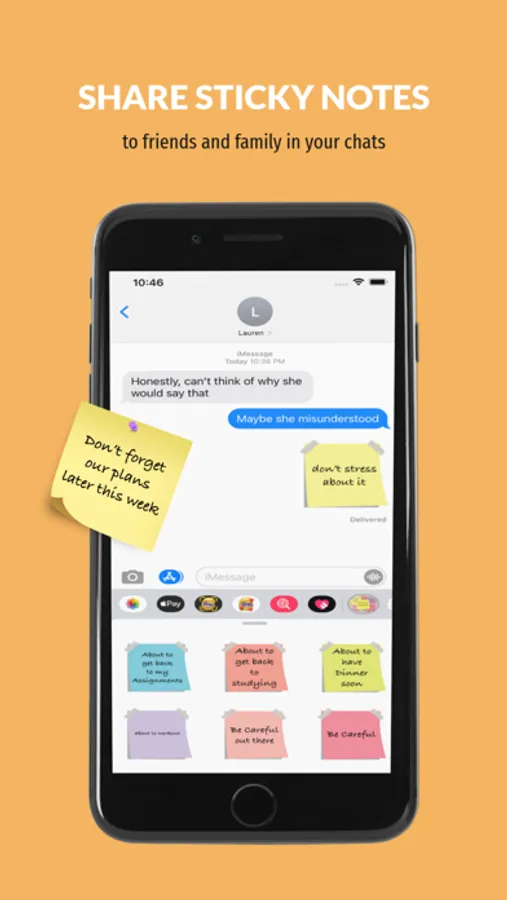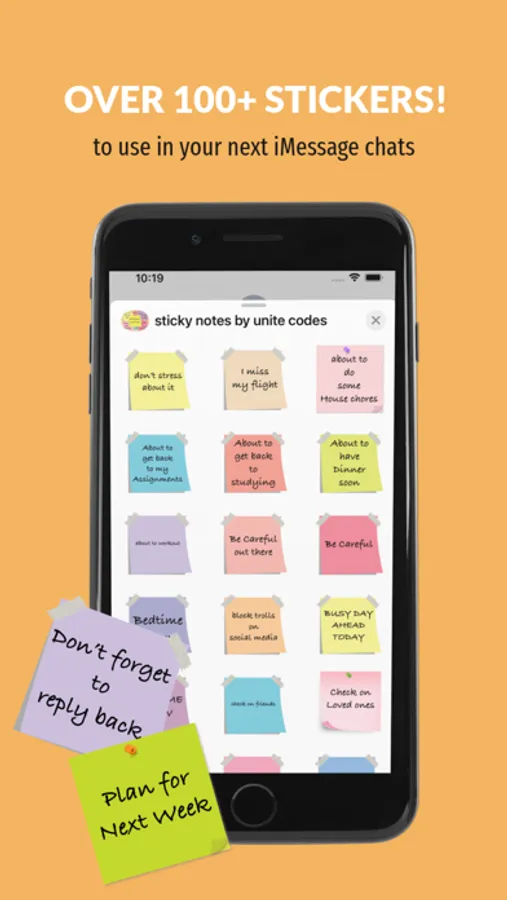 With OVER 100+ STICKERS, with simple reminders and conversational phrases on virtual sticky notes that you can send to friends and anyone on iMessage.