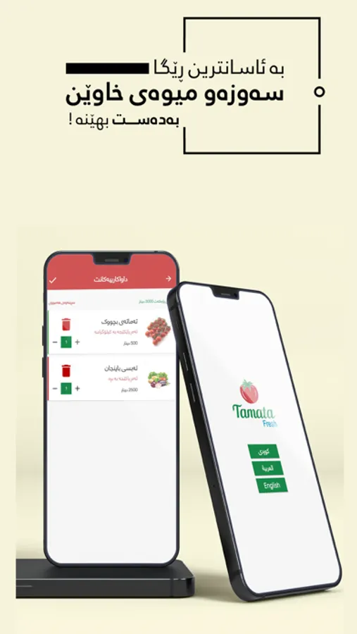بە ئاسانترین شێوە دەتوانی سەوزەو میوەی خاوێن ( خۆماڵی و بیانی) لە تەماتەوە داوابکەیت، هەر بەرهەمێکت دەوێ بە ئاسانی گەران بکە بە دوایدا و ژمارەی ویستووت دیاری بکە، پاشان زانیارییەکانت بنێرە و بە زووترین کات داواکرییەکانت بەدەست دەگات!