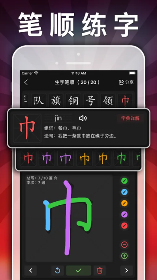 生字训练:手写板,拼音练习、笔顺笔画书写