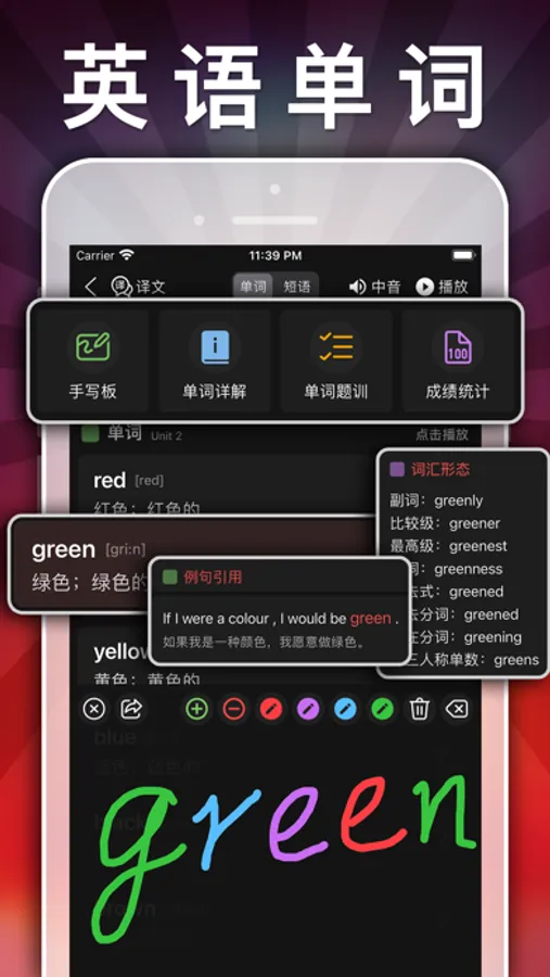 词语测验:记录学习单词短语,图标统计,让进步有个见证!