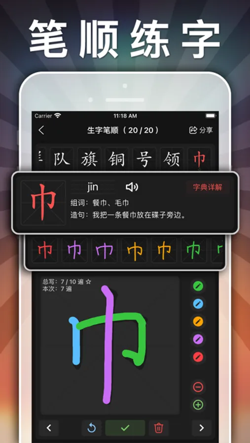 生字训练:手写板,拼音练习、笔顺笔画书写