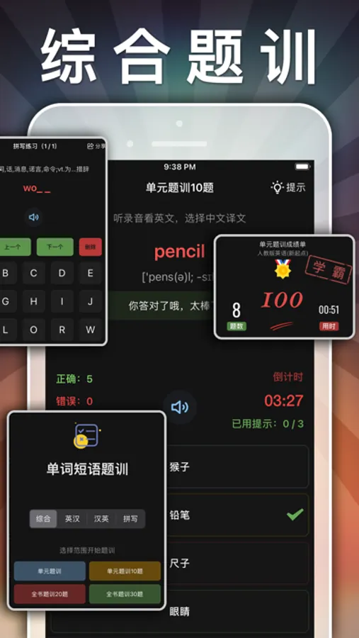 词语测验:记录学习单词短语,图标统计,让进步有个见证!