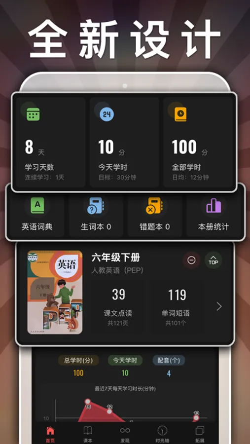 (学习成绩记录:课文学习、学习时长、单词学习、单词训练)