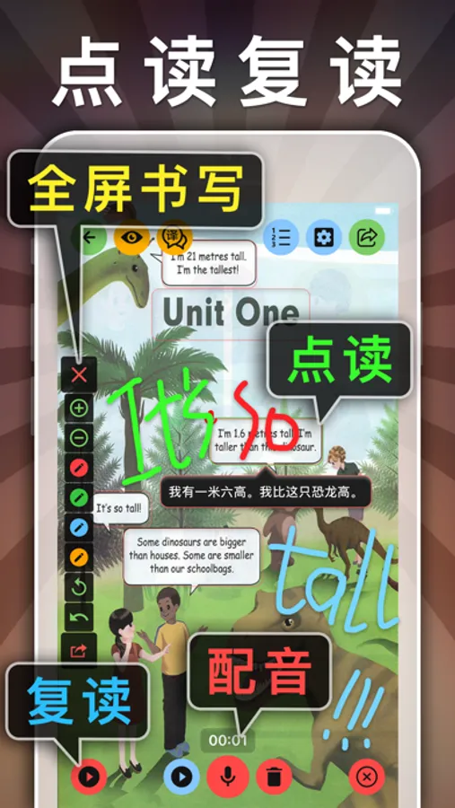 点读功能:点到哪里读哪里,点读翻译样样行,孩子跟着一起读,在轻松快乐中学习。