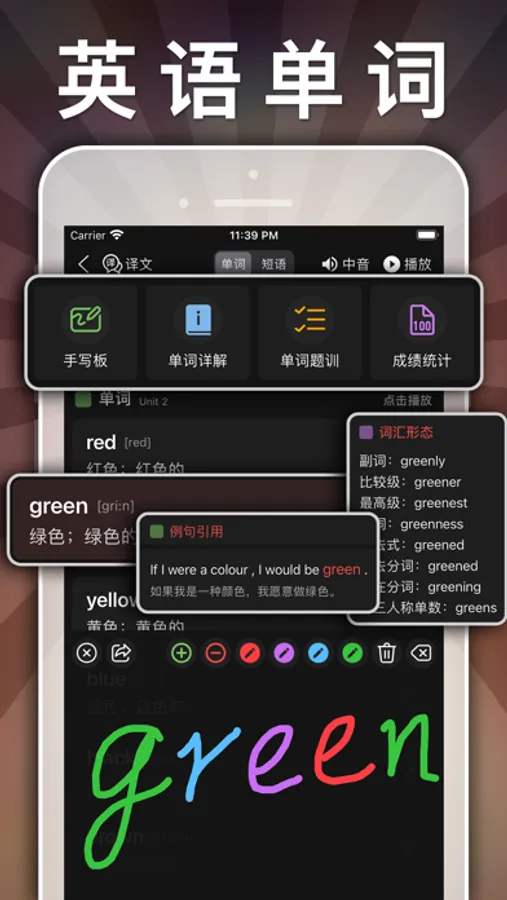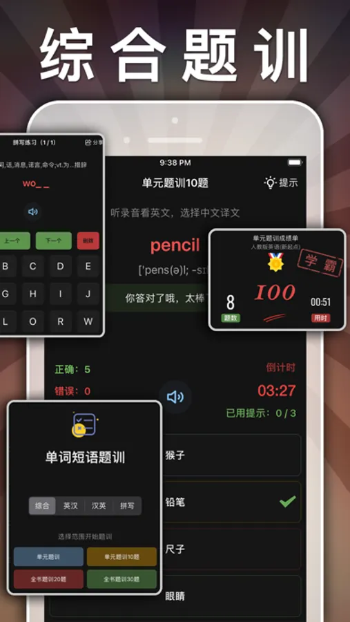 词语测验:记录学习单词短语,图标统计,让进步有个见证!