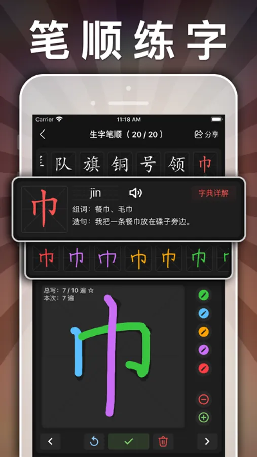 生字训练:手写板,拼音练习、笔顺笔画书写