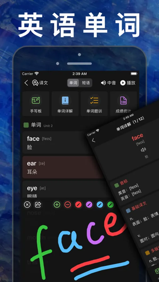 词语测验:记录学习单词短语,图标统计,让进步有个见证!