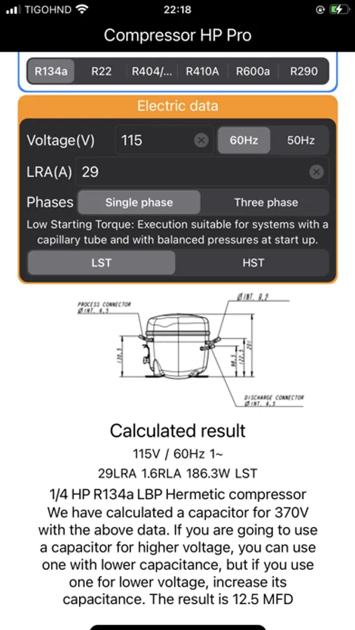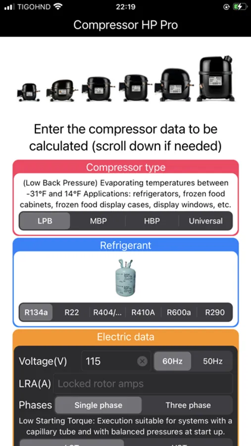 Compressor HP Pro is unique. We have developed a calculator to know the horse power of hermetic compressor .
