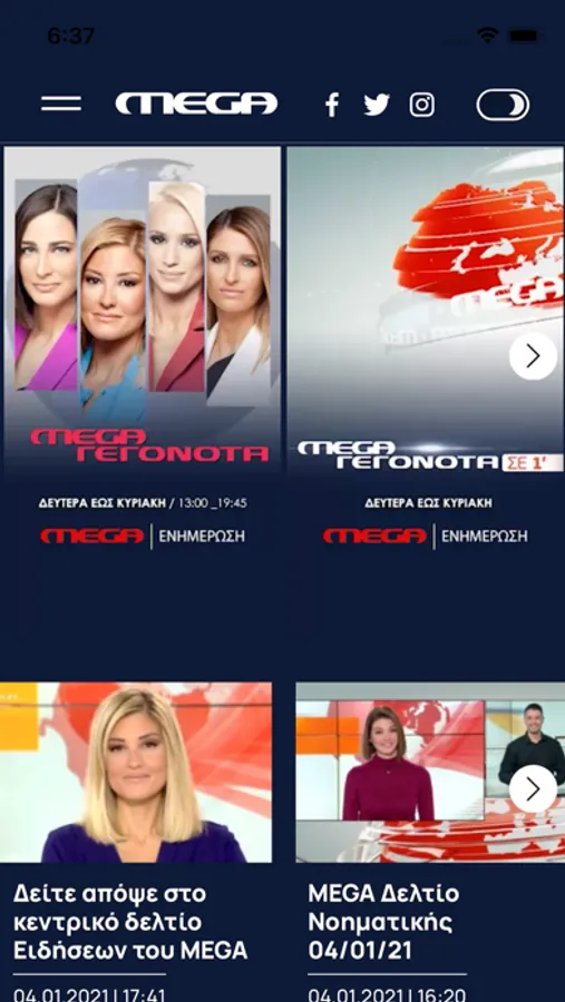 H εξελιγμένη εφαρμογή φέρνει στο κινητό ή στο tablet σας όλο το ΜEGA. Οι αγαπημένες σας σειρές, ταινίες, εκπομπές και τα γεγονότα που θέλετε να μάθετε και να δείτε από τα δελτία Ειδήσεων και τις ενημερωτικές εκπομπές είναι εδώ!