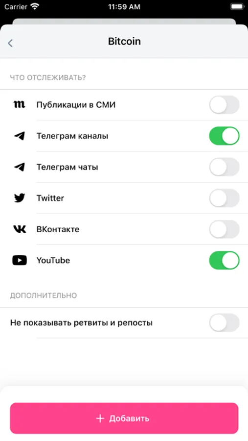 Mentions - это мониторинг упоминаний слов в телеграмме, новостях и других источниках.