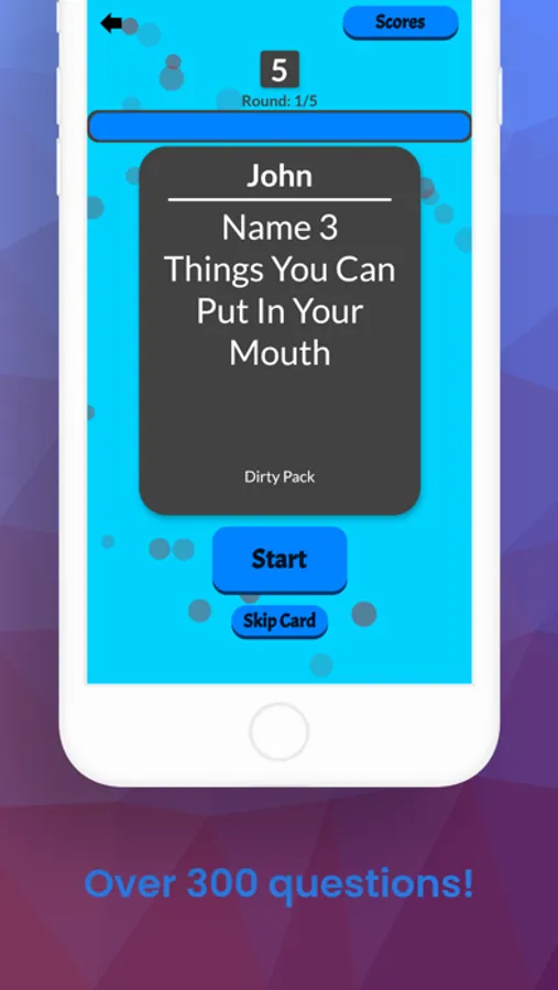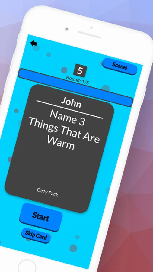 A player is selected to go first. The player reads the question the presses the "start" timer. They now have 5 seconds to answer the question. If the player was able to correctly answer the question, they will choose either "Correct" or "Wrong". Next player goes until the rounds are up. Whoever was able to get the most correct answers wins!