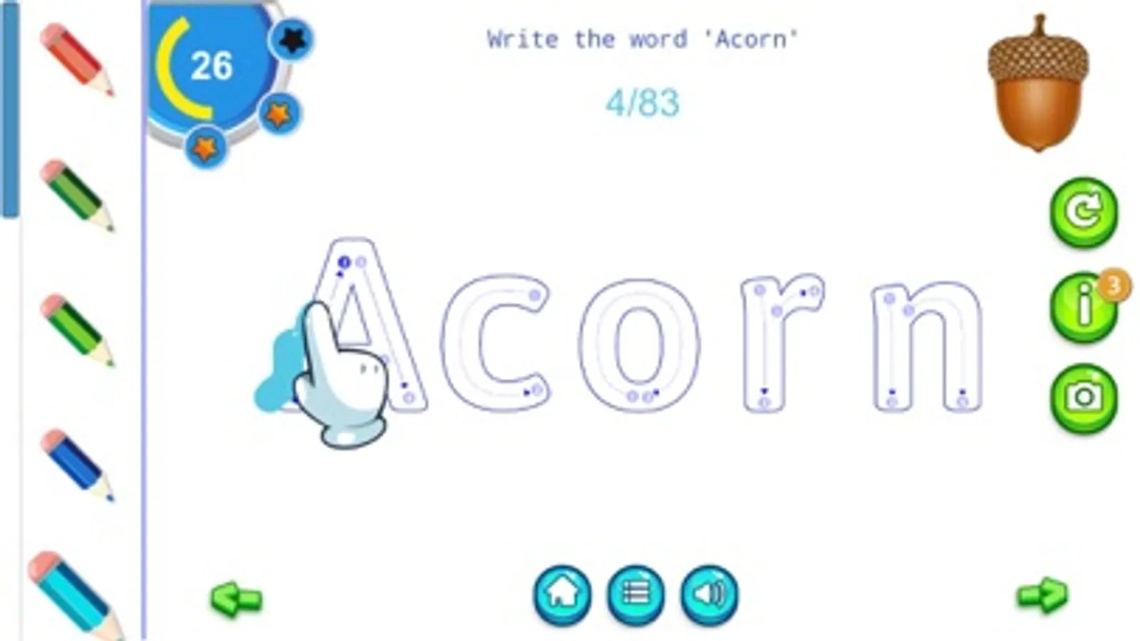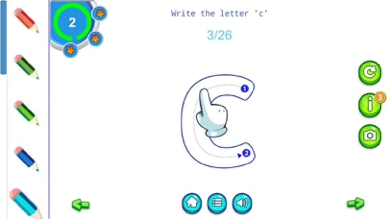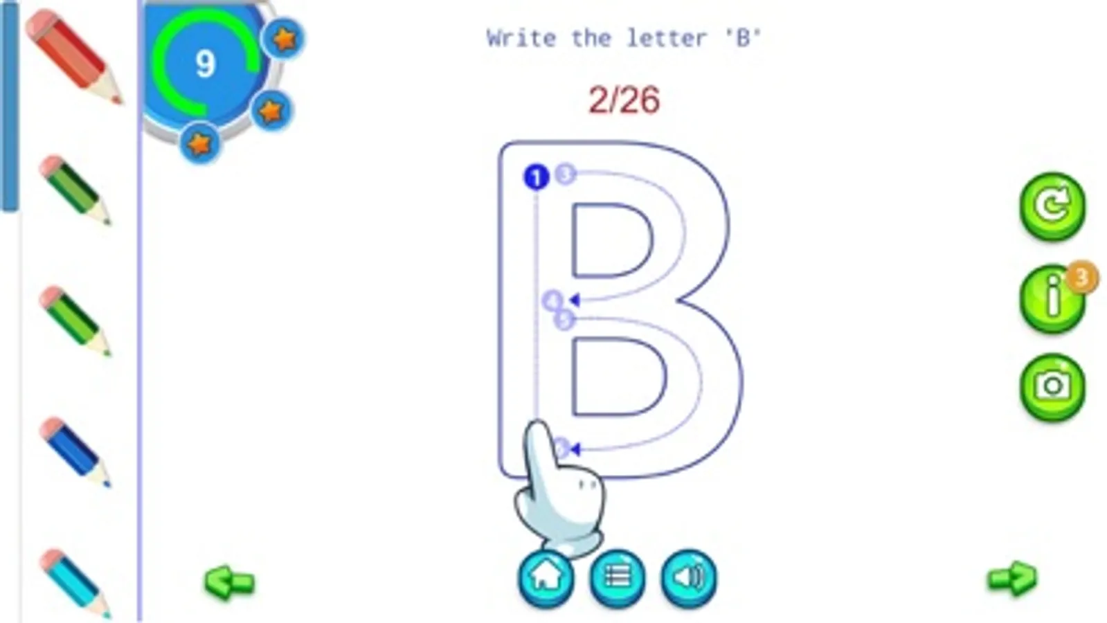 This is a great educational app & game for all ages to help you learn English! Learn how to correctly write each letter of the alphabet. Follow the guided hand & numbers to make the perfect strokes. This is not limited to only uppercase letters. This also has lowercase letters, numbers & words.