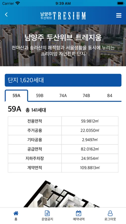 > 남양주 두산위브 트레지움 예약내역 확인이 가능합니다
