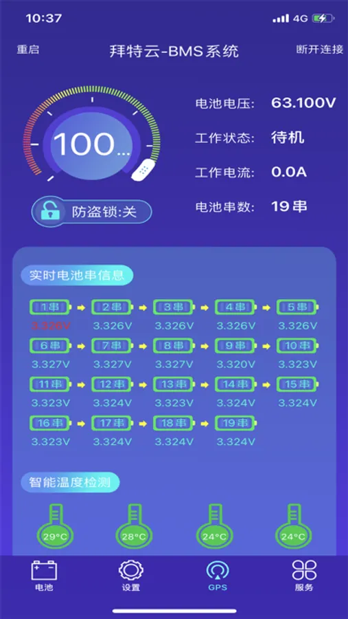 该APP用于 拜特BMS保护板的控制,可查看保护板的信息,对保护板进行远程操作