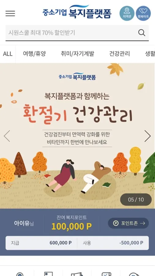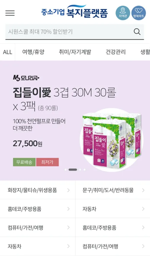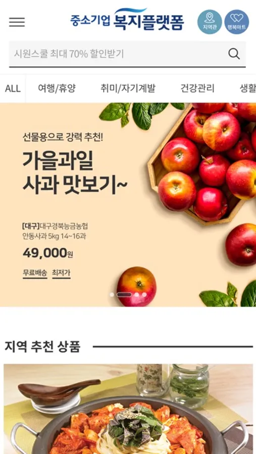 휴양소/여행, 건강검진, 취미/자기계발, 생활안정 서비스와 기업소모품관을 비롯한 지역상품관 등에서