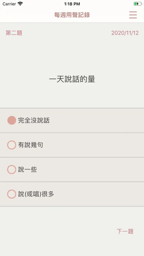 2.每週評量:記錄使用者用聲方式與嗓音狀況。