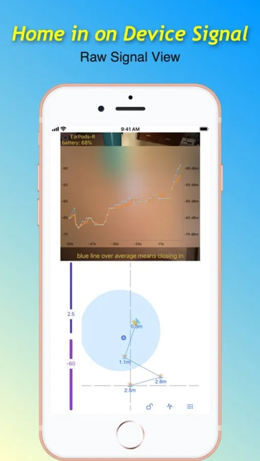 5. Go towards the marker and turn on raw signal view. When the blue line is over the average line it means the signal is getting stronger and you are getting nearer your precious gadget.
