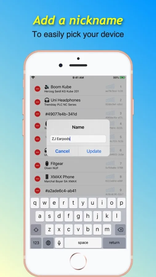 1. Open the app and tap your device from the list. You can change the device name if you want.