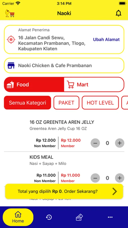 Selamat datang di Naoki Food & Mart mobile delivery app! aplikasi yang diterbitkan untuk layanan pesan antar, dan virtual member.