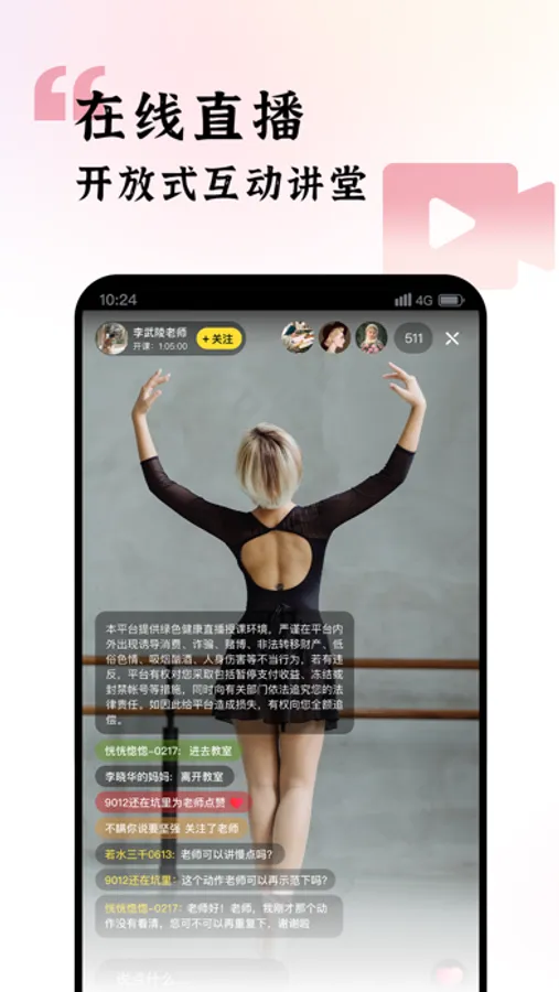 2. 互动:直播课堂,互动连麦,老师可实时关注学生状态,学生可随时进行提问;