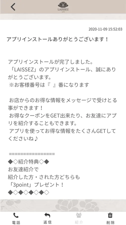 LAISSEZのアプリをSNSを通じてお友達に紹介する事ができます。