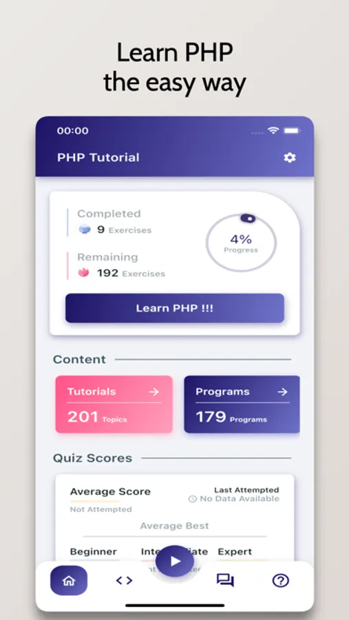 Whether you want to learn PHP Programming as a Hobby, for School/College, or want to build a Career in the field, this Tutorial is for you. The tutorial covers everything from the Basics of Programming to Advanced Concepts like Data Structures. It also comes with a sleek and interactive graphical user interface.